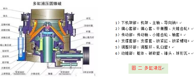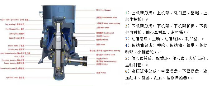 | 結(jié)構(gòu)組成 | 上機架,下機架,動錐,傳動軸,偏心套,液壓缸體 | 下機架,偏心套,傳動,支撐套,調(diào)整環(huán),動錐 | 附圖一、圖二 |